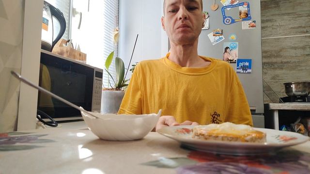 Сегодня на завтрак, геркулесовая каша на воде и бутерброд.