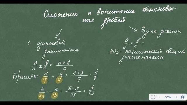 Сложение и вычитание обыкновенных дробей