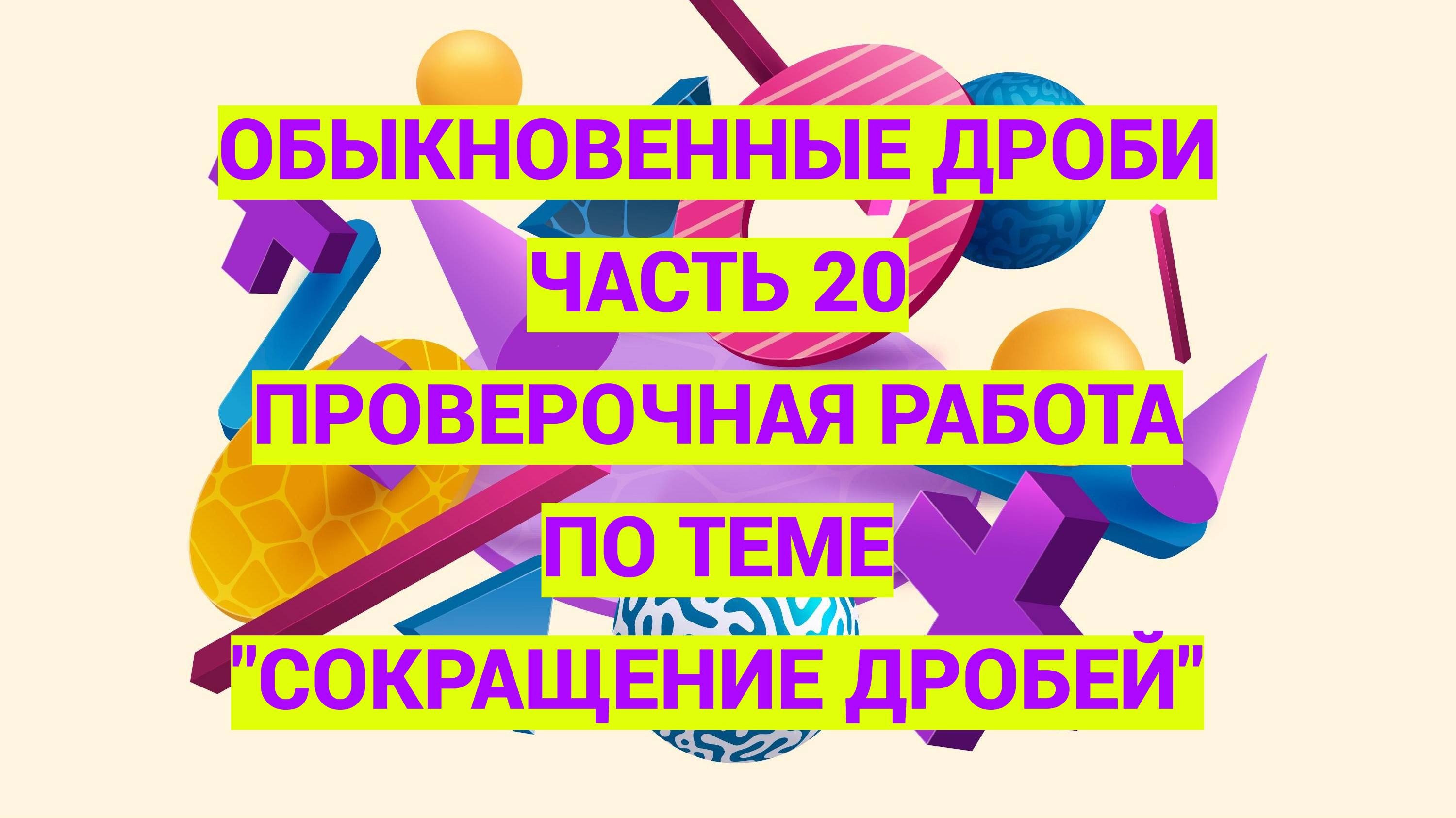 Дроби. Часть 20. Проверочная работа по теме Сокращение дробей