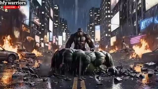 Схватка сверхреалистичных гигантских монстров. Халк и Кинг Конг.