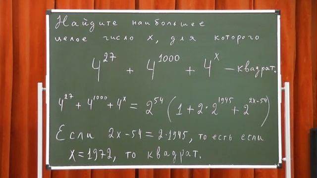 308 Наибольшая степень числа 4, которая в сумме с 27-й и 1000-й степенями даёт квадрат