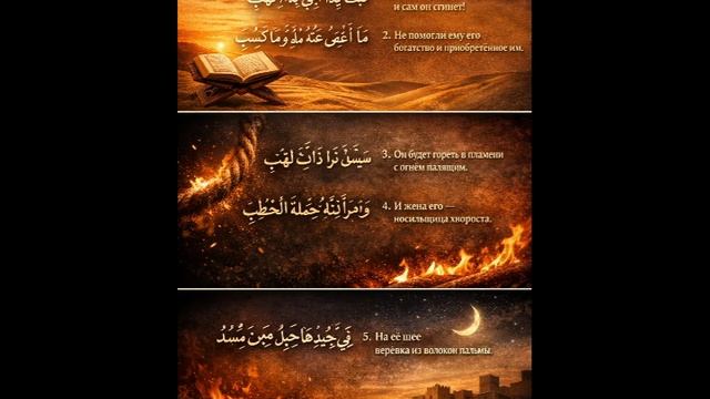 Слушаем суру «Таббат» (сура №111 Священного Корана) — сильную по смыслу и короткую по объёму суру, ниспосланную в Мекке. В этой суре говорится о наказании Абу Ляхаба за его вражду к Пророку ﷺ и истине. 📖 Читайте, слушайте и размышляйте над словами Аллаха. Пусть это чтение принесёт вам пользу, укрепит иман и станет садака-джария. Подписывайтесь на канал, чтобы вместе учиться читать Коран правильно и красиво.
