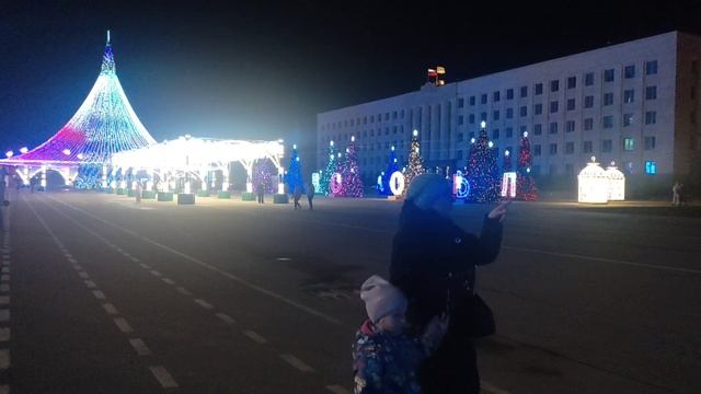 Прогулка с дочкой Олей и правнучкой Дашей. Новогодняя ёлка и без снега.