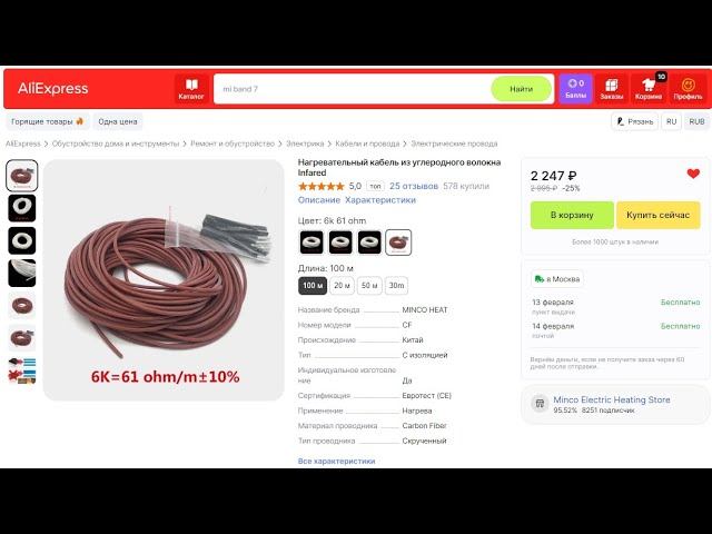 Греющий карбоновый кабель Купил в Китае 6К 61 Ом часть 1