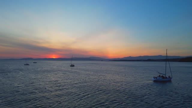 Парусные яхты в бухте Отрада на закате (город Находка)
