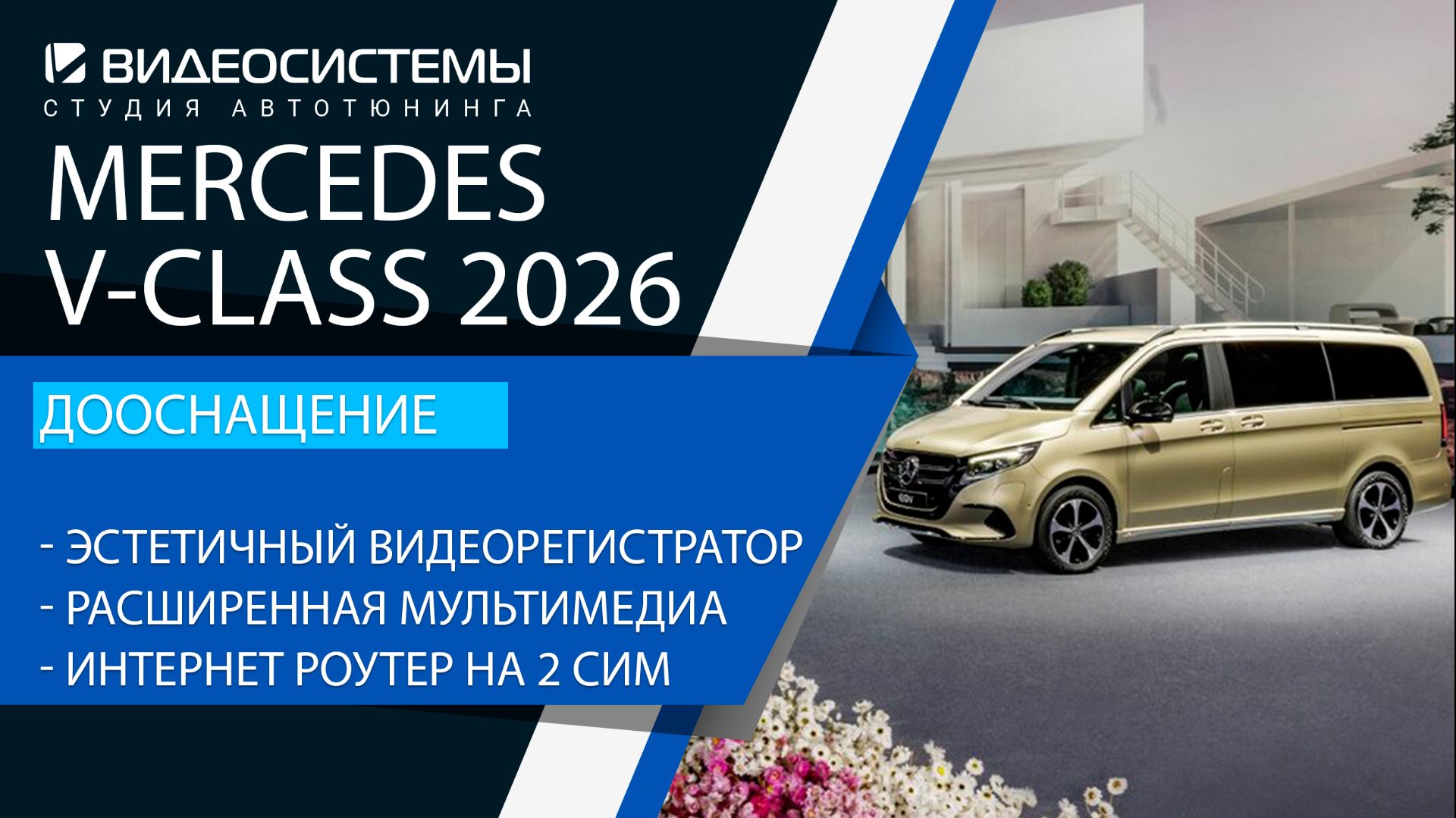 Дооснащение Mercedes V-class 2026. Эстетичный видеорегистратор, расширенная мультимедиа, интернет.